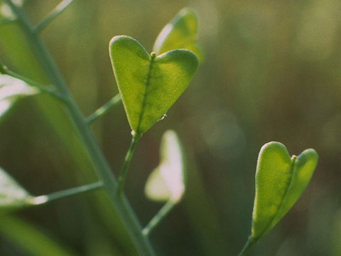 The name of the plant was already used before Linné, and it is characterized by its striking, inverted, heart-shaped fruits (botanical name: siliques). They resemble the fur capes worn by shepherds in the Middle Ages. Capsella is the diminutive of the Latin “capsa” (= capsule), bursa comes from Latin “bursa” (= fur), and pastoris is the genitive form of “pastor” (= shepherd). This was combined into the name shepherd's purse.